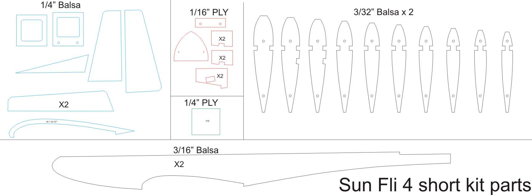 Wingspan 60" .45 - .61 2C engine Plane is SPA Legal The Plans will be emailed as a PDF for local printing when the kit is shipped. Short Kit ships with Standard firewall for standard motor mount. Wood beam motor mounts can be added. JPG of parts included in short kit can be downloaded here. |